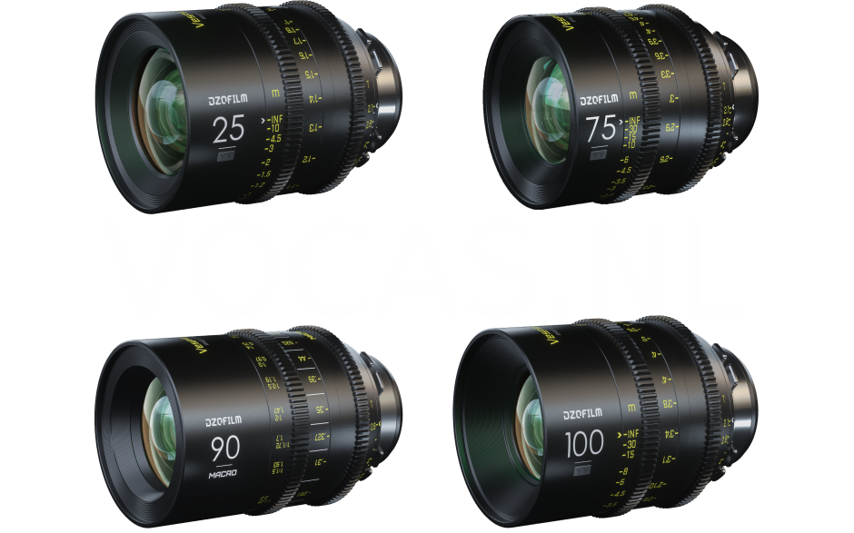 Juego de objetivos DZOFILM Vespid 4 (25 mm, 75 mm, 100 mm T2,1, macro 90 mm T2,8) - Imperial (montura PL). Nota: Este juego incluye un kit de herramientas para montura EF con adaptadores de conversión para usuarios de montura EF.