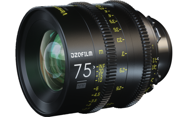 El objetivo DZOFilm VESPID 75 mm T2.1, relativamente pequeño y ligero, forma parte de la serie de objetivos VESPID de DZOFilm y es adecuado para la cinematografía independiente y de alta gama en formato full-frame. El objetivo tiene un diámetro frontal de 80 mm, lo que le permite funcionar prácticamente con cualquier caja difusora de estilo cine. Gracias a sus reducidas dimensiones, este objetivo es una opción atractiva para trabajar con drones y gimbals, así como para grabar a mano alzada o desde un arma. La montura PL intercambiable permite utilizar este objetivo totalmente manual en diversas cámaras de cine modernas e históricas, mientras que la cobertura de formato completo es compatible con sensores con un círculo de imagen de hasta 46,5 mm para su uso en cámaras con sensores de hasta formato completo sin viñeteado.
