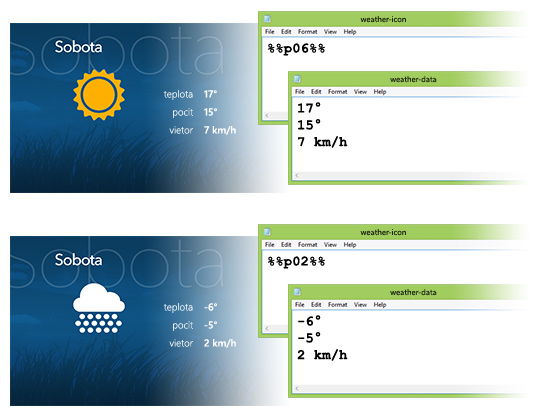 Una función muy útil del generador de subtítulos ESM CG es la posibilidad de sustituir un texto determinado por una imagen o un logotipo. Basta con configurar en los ajustes qué texto o carácter se asociará a cada imagen y, a continuación, insertar estos caracteres en un archivo de texto o XML externo. Esto resulta especialmente útil para los mensajes del panel inferior, las cotizaciones o el tiempo, donde puede definir muy fácilmente los gráficos meteorológicos o cambiar la flecha cuando la cotización sube o baja. Las posibilidades son casi ilimitadas y, en plantillas complejas, puede modificar varios datos a la vez de esta manera.