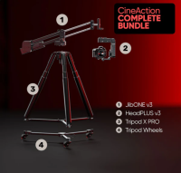 El kit incluye: JibONE v3, HeadONE v2, módulo de inclinación, HeadOne v2, trípode X Rapid, trípode inalámbrico