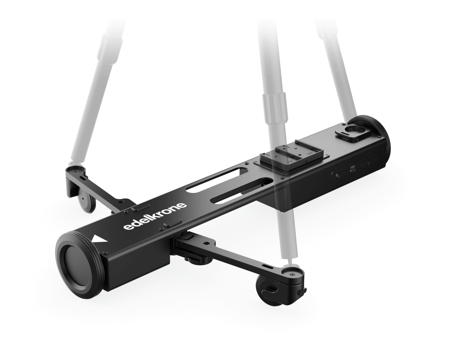 Carro motorizado para mover la cámara y cualquier trípode. Permite movimientos rectos o curvos de la cámara sobre una superficie plana y se conecta de forma inalámbrica a los cabezales motorizados de edelkrone.