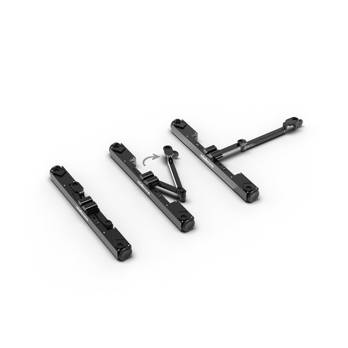 El DollyPLUS está equipado con dos motores paso a paso de alto par y garantiza un movimiento extremadamente preciso con una desviación inferior a 1 cm, incluso agrandes distancias. El DollyPLUS no es solo un dispositivo potente para grandes escenas; también funciona sin problemas en movimientos suaves de dolly y, si es necesario, actúa como una alternativa compacta a un carro deslizante.