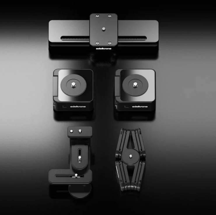 El Edelkrone MobiMotion Bundle es un paquete completo diseñado para ampliar tus posibilidades de control del movimiento. Incluye el deslizador motorizado SliderONE v3, dos unidades HeadONE v2, el módulo Tilt v4 y el trípode StandONE. Este paquete ofrece un movimiento motorizado preciso y fluido, por lo que es ideal para conseguir tomas dinámicas y creativas en tus producciones de vídeo.