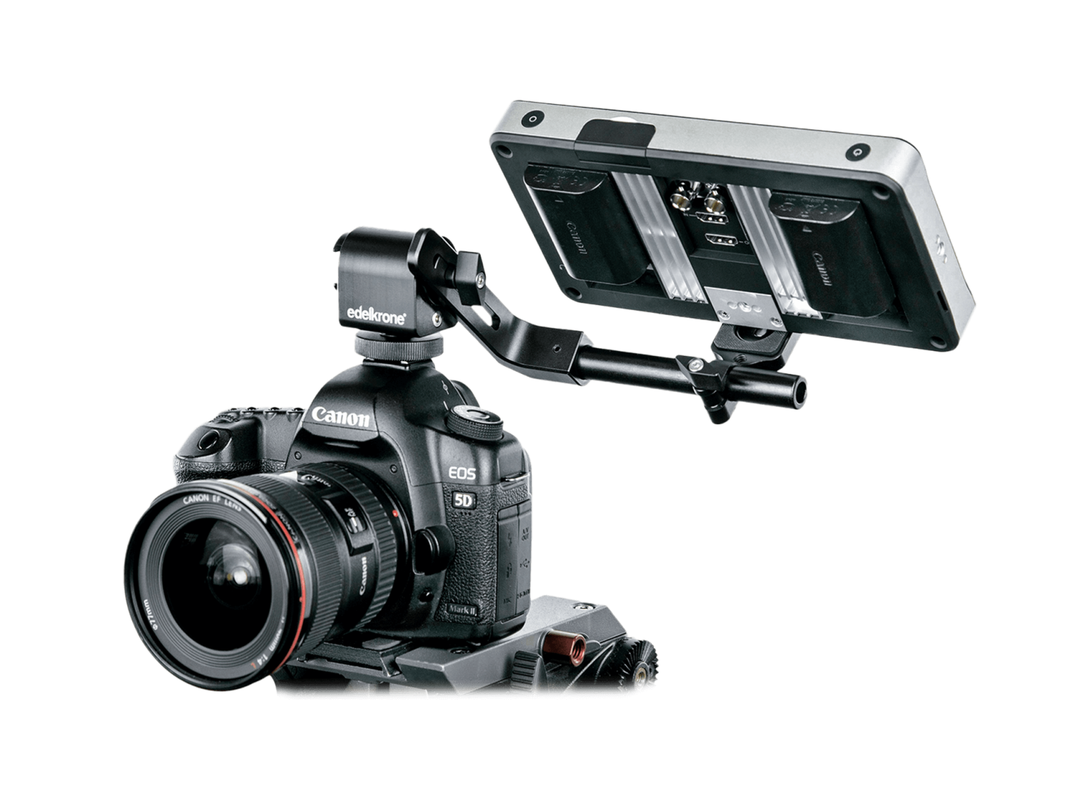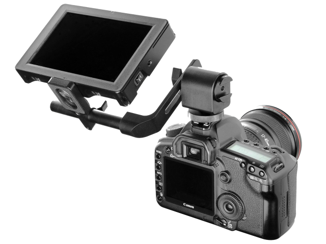 El soporte para monitor/EVF se puede utilizar en todas las cámaras fotográficas/réflex digitales y plataformas. El soporte para monitor/EVF se puede fijar a soportes de zapata caliente/fría o a puertos con tornillos de 1/4"-20.