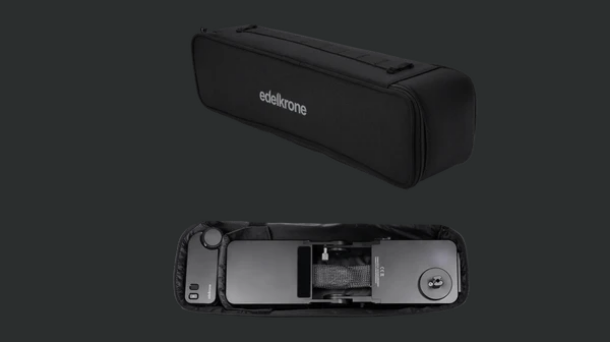 Funda blanda resistente para transportar y proteger los auriculares Edelkrone HeadPLUS y HeadPLUS PRO, con correas multifuncionales y fácil acceso.