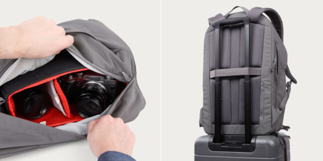 La mochila es muy adaptable y cuenta con un sistema de anclaje de inserciones que te permite integrar un cubo para cámara de 4 L u 8 L, transformándola en una bolsa para cámara totalmente funcional. Una funda acolchada específica para portátil acoge de forma segura dispositivos de hasta 14", mientras que el característico bolsillo vertical de acceso rápido proporciona un acceso rápido a lo esencial cuando estás en movimiento.