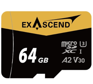 La tarjeta Exascend EX64GUSDU1 Catalyst de 64 GB microSDXC UHS-I (V30/U3) ofrece una velocidad de lectura de 170 MB/s y de escritura de 140 MB/s para vídeo 4K RAW y fotos de acción. Resistente (de -25 °C a 85 °C), 3D TLC, compatible con A2, garantiza un funcionamiento fluido de las aplicaciones y transferencias de alta velocidad en condiciones extremas.