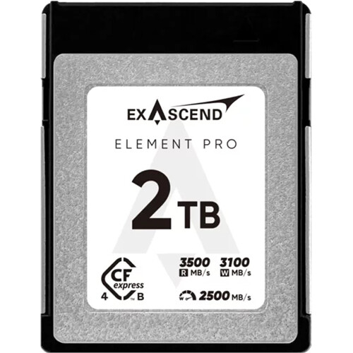 La tarjeta Exascend CFexpress 4.0 tipo B Element Pro Series de 2 TB está diseñada para la producción cinematográfica de alto nivel y ofrece un rendimiento y una resistencia sin igual. Con una impresionante capacidad de 2 TB, proporciona espacio suficiente para sesiones de grabación más largas en resoluciones de 8K y 12K. Su interfaz PCIe 4.0 / NVMe 1.4 garantiza velocidades ultrarrápidas, con una velocidad máxima de lectura de 3500 MB/s y de escritura de 3100 MB/s, lo que permite transferencias de datos rápidas y una grabación ininterrumpida a una velocidad de hasta 120 fotogramas por segundo.
