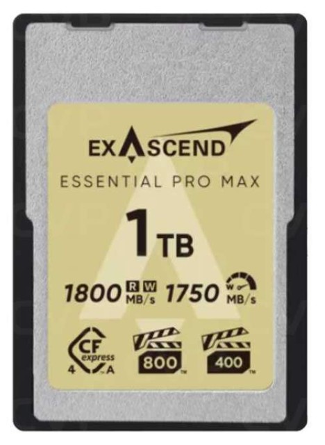 La tarjeta de memoria Exascend Essential Pro Max CFexpress Tipo A 4.0 de 1 TB está diseñada para creadores profesionales que necesitan velocidad, estabilidad y fiabilidad para flujos de trabajo avanzados en resoluciones de 8K y 12K. Gracias a la interfaz PCIe Gen4 x1 con una velocidad de lectura y escritura ultrarrápida de hasta 1800 MB/s, las certificaciones VPG400 y VPG800 y una gestión térmica avanzada, ofrece una captura de vídeo fluida en formato RAW sin interrupciones y una rápida transferencia de datos en un diseño compacto y resistente.