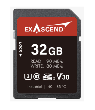 Exascend Industrial SD300 V30 C10 SD 6.0 32 GB (EX32GSDV30-IDE) es una tarjeta SDXC resistente para aplicaciones industriales que ofrece una velocidad de lectura de hasta 90 MB/s y una velocidad de escritura de hasta 80 MB/s, con clasificación V30/U3/C10/A2 para un vídeo 4K y un disparo en ráfaga fiables. Funciona en un rango de temperatura de -40…