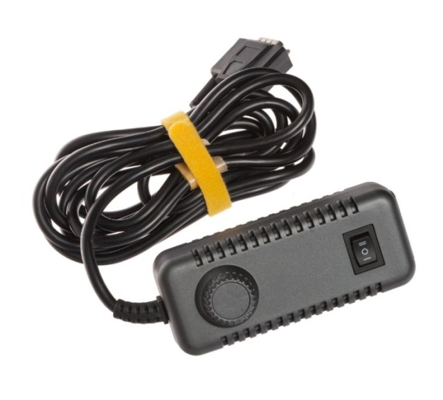 Este regulador de intensidad con cable permite controlar la intensidad de la luz de los paneles LED de F&V que cuentan con un puerto serie en la parte trasera. El cable mide 90 pulgadas, lo que permite al usuario situarse a más de 7 pies de distancia de la luz.