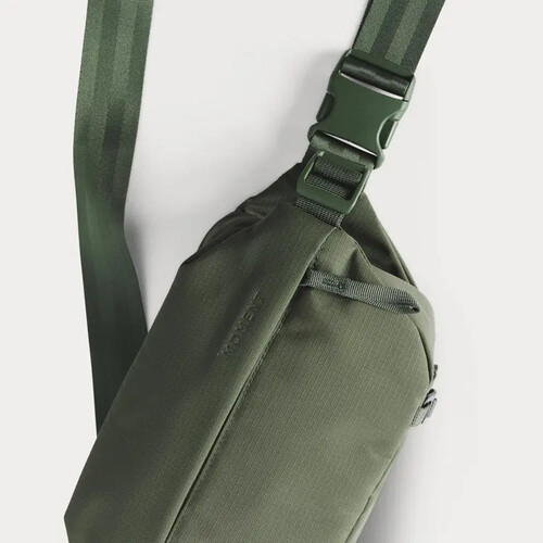 La bandolera Fanny Sling se puede adaptar a tus necesidades y llevarla como mochila a la cintura, bandolera cruzada o bandolera al hombro, lo que ofrece versatilidad para cualquier ocasión. Las correas utilitarias exteriores aumentan la funcionalidad y permiten fijar equipo adicional según sea necesario. El diseño en color oliva, fabricado en nailon 420D de alta densidad con micro ripstop y acabado resistente al agua, combina durabilidad y resistencia a la intemperie con una estética elegante y terrosa.