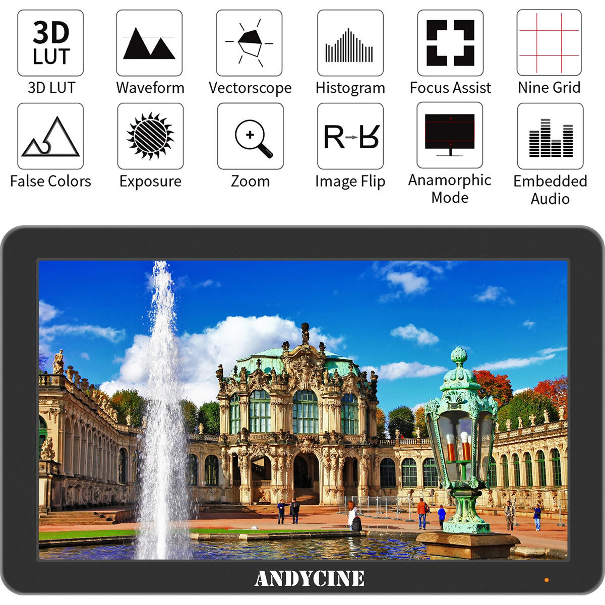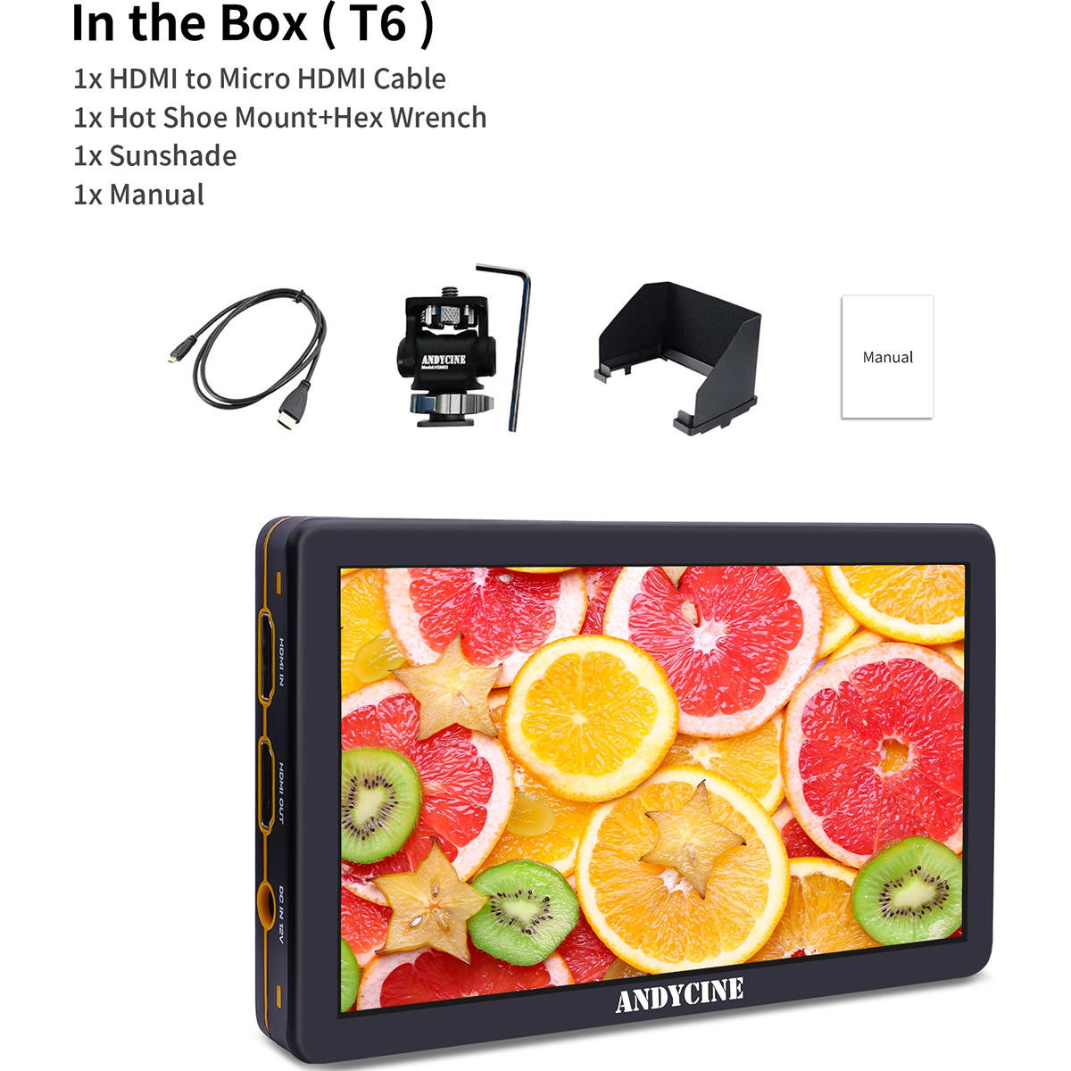 El Andycine T6 es un monitor de cámara con una pantalla de 6 pulgadas y una resolución de 1920 x 1080, un resistente chasis de aluminio y una entrada/salida HDMI 4K con salida de corrección 3D LUT.