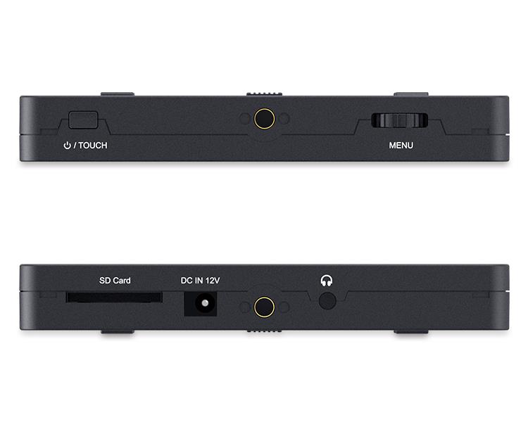 • Salidas: HDMI 4K, salida de auriculares estéreo, salida de alimentación de 8 V (conector de 5,5 mm de diámetro exterior y 2,1 mm de diámetro interior; para alimentar cámaras si el monitor está conectado a una fuente de alimentación de 12 V)