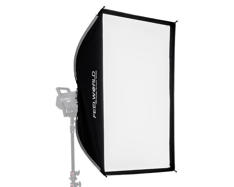 El FEELWORLD FSR90 es un softbox rectangular de 60 x 90 cm (proporción 2:3). Gracias a su superficie y a su forma rectangular, es ideal para la fotografía de retratos y de productos.