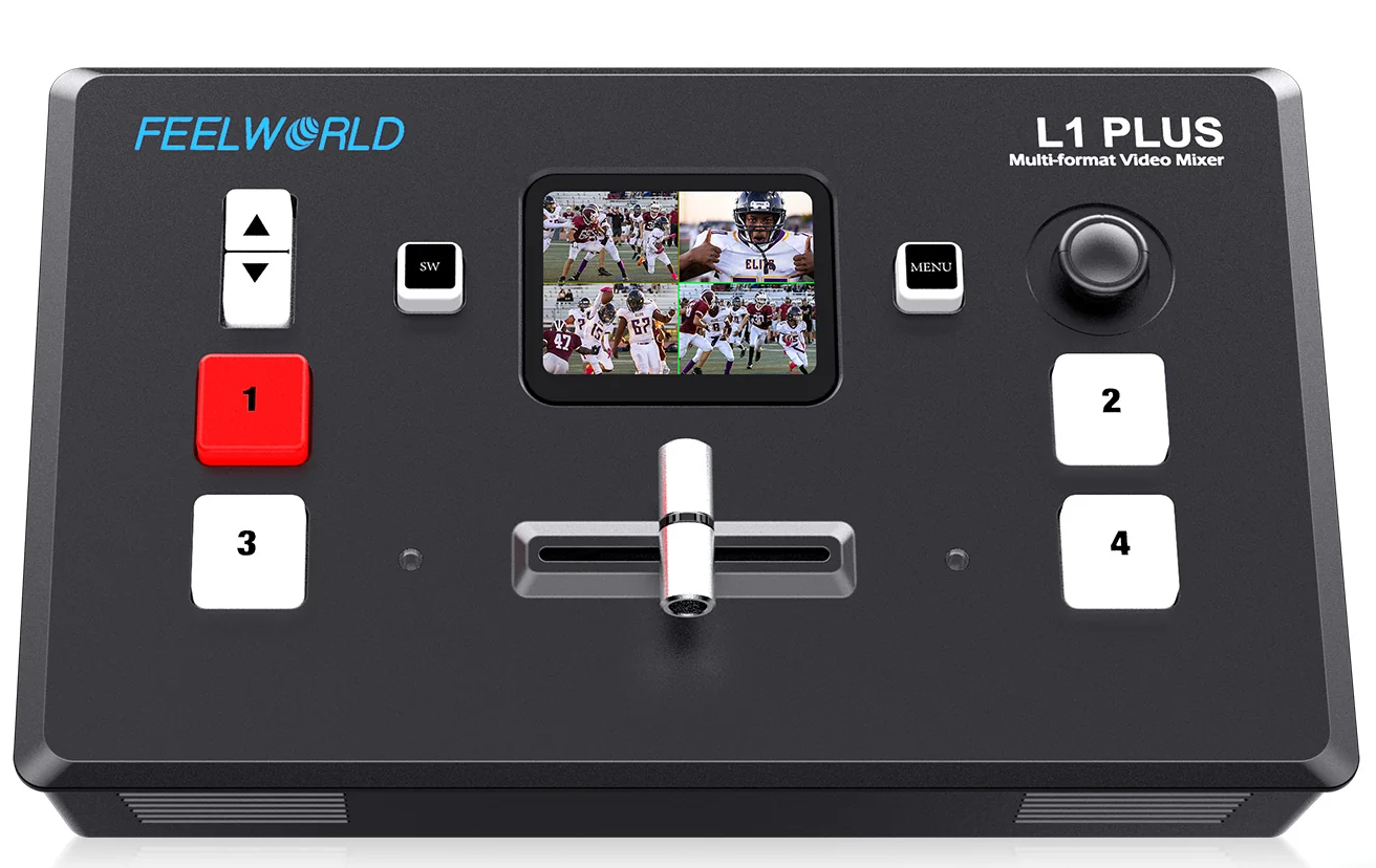Mezclador y conmutador de vídeo multicámara FEELWORLD L1 PLUS con pantalla táctil