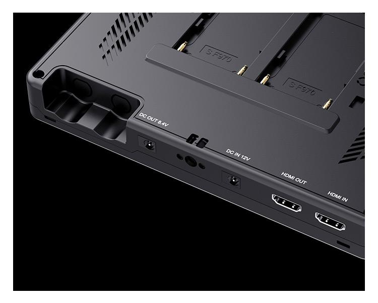 Monitor de cámara de 7" con alto brillo (2.200 cd/m², incluye sensor de luz ambiental para el ajuste automático del brillo), pantalla táctil y compatibilidad con correcciones 3D LUT (preset integrado «Log to Rec.709» o importación de archivos .cube propios). Se suministra con un cable Mini/Micro HDMI-HDMI y un soporte de montaje. Variante LUT7 con E/S HDMI 4K.