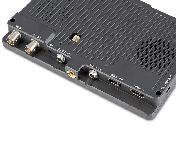 Monitor de cámara de 7" con alto brillo (2.200 cd/m²), contraste de 1.200:1 y ángulos de visión de 160/160° -- ¡en una resistente carcasa de aluminio! El monitor ofrece entradas 3G-SDI y 4K HDMI (hasta 4Kp30), altavoz integrado (y salida de auriculares), una salida de alimentación de 8,4 V, gama Rec.709, así como una serie de funciones de software para la monitorización y medición de la señal, incluyendo histograma, modo anamórfico, medidores de exposición, visualización en colores falsos, etc.
