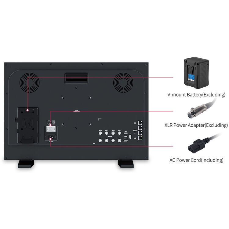 • Alimentación: 1 × V-Mount en placa fija, 1 × XLR de 4 pines, CA 100–240 V