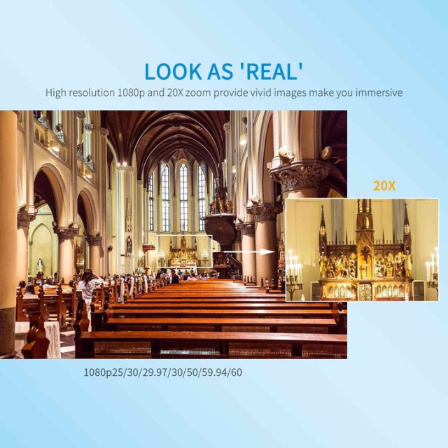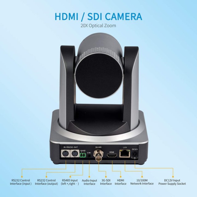 La cámara POE20X se puede instalar en cualquier pared, techo o dispositivo para capturar imágenes detalladas para cualquier producción de vídeo en directo.