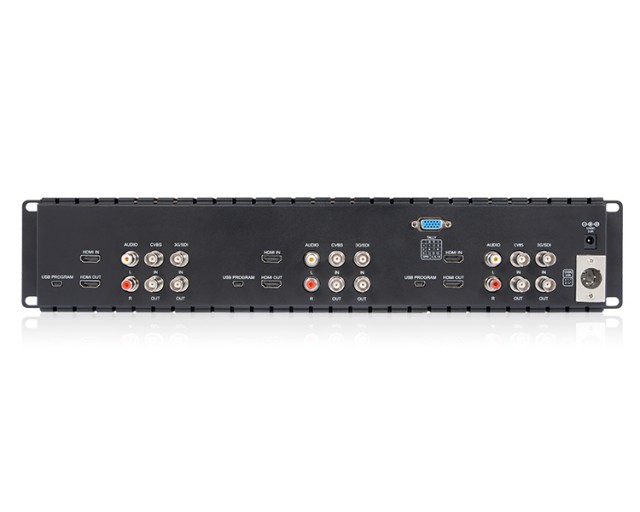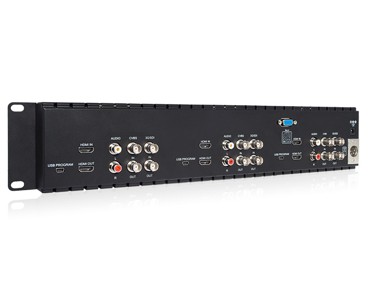 Está equipada con una pantalla TFT de 5 pulgadas con una resolución de 800 x 480, ángulos de visión de 140°/120°, una luminosidad de 500 cd/m² y un contraste de 500:1 para la visualización de material SD/HD a través de entradas 3G-SDI y HDMI. Gracias a sus dimensiones compactas y a su resistente carcasa metálica con buena disipación del calor, es un monitor ideal para su instalación en unidades móviles, racks portátiles o instalaciones de sobremesa en estudios, salas de control o salas de mando. La luz indicadora (roja/verde/amarilla) está disponible en el panel frontal de cada uno de los monitores (DB-15).