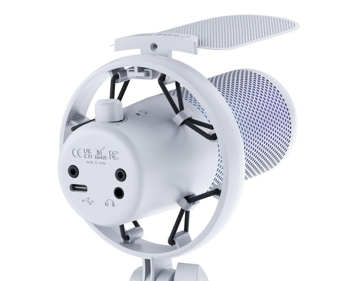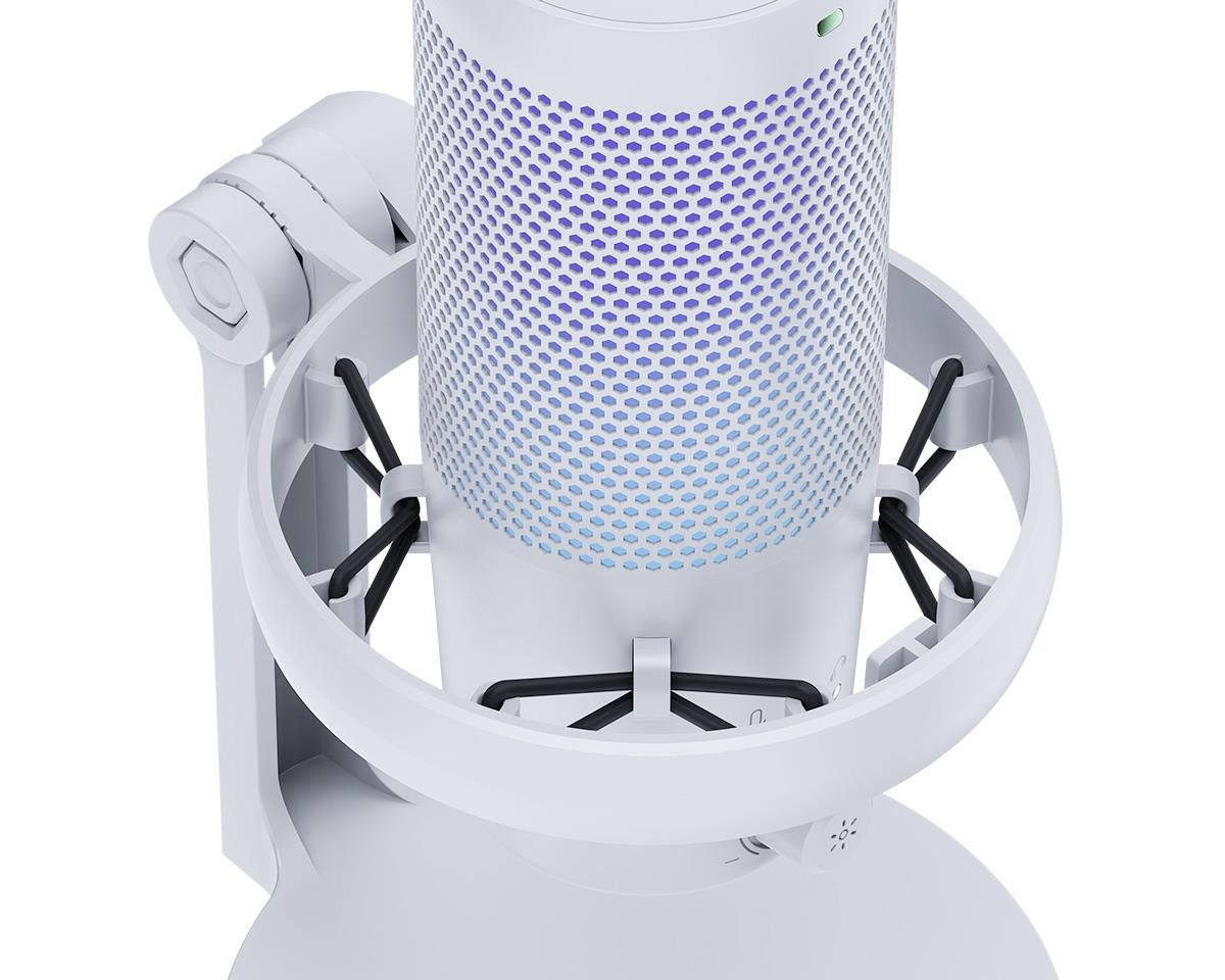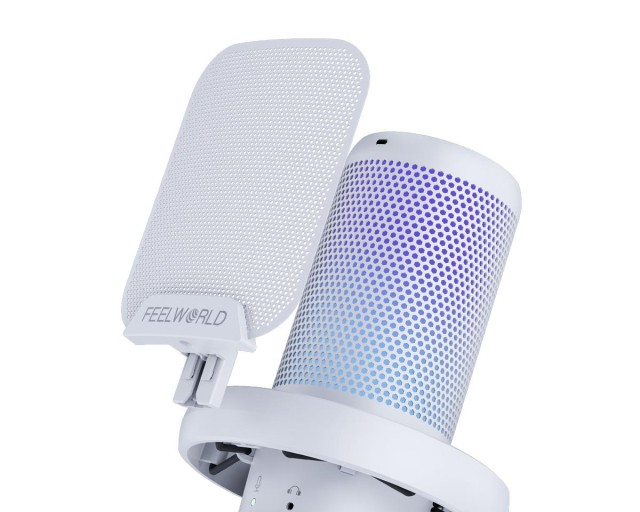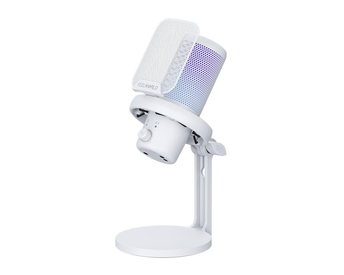 El Feelworld VM1-XS-W es un micrófono de condensador USB de tipo «plug-and-play» con un acabado blanco impecable, ideal para streaming, videojuegos y podcasting. Cuenta con un patrón polar cardioide para un sonido nítido, un botón especial para silenciar/suprimir el ruido, iluminación RGB multimodal personalizable y un soporte de mesa incluido en el paquete.