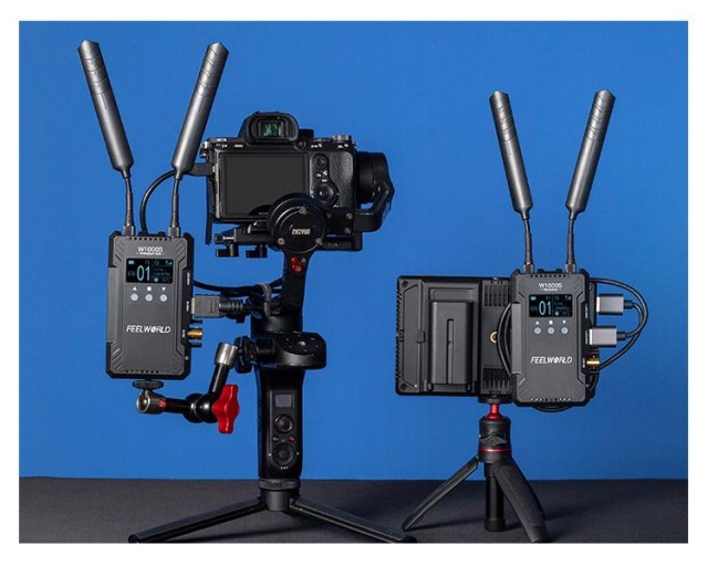 El kit FEELWORLD W1000S TX/RX es un sistema de transmisión inalámbrica de vídeo en tiempo real integrado con intercomunicador y retransmisión en directo. Gracias a su alta velocidad de transmisión de 8 Mb/s, a los puertos SDI y a los dos puertos HDMI, así como a otras funciones diseñadas para la producción cinematográfica profesional, el W1000S refuerza la posición de cineastas, equipos de rodaje y creadores de contenido en todo el mundo.