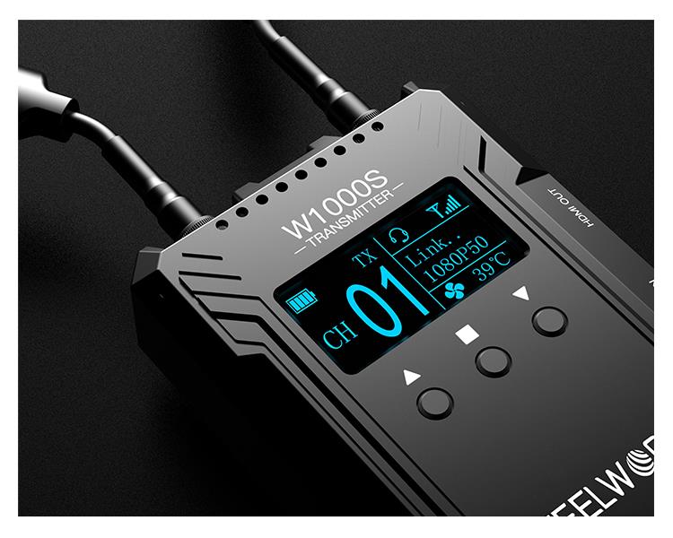 El transmisor W1000S tiene un alcance de más de 1000 pies sin problemas y fiable para la transmisión inalámbrica de imagen y sonido; una latencia alcanzable de 0,08 s para la visualización en tiempo real, lo que permite.