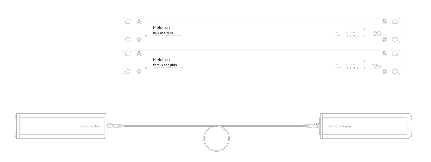 Si su infraestructura solo admiteuna única fibra simple (simplex), el Mux/Demux One Plus le permitirá gestionar fácilmente toda la transmisión. O si desea tenderel menor número posible de cables en eventos en directo, el dispositivo le permitirá multiplexar hasta cuatro canales de vídeo más Ethernety transmitir todos los datos del punto A al punto B medianteuna sola fibra. Todas las señales de vídeo 12G conservan la integridad total de los datos: lo que entra, salesin cambios. La conexión Ethernet funciona igual que un cable Cat5 convencional.
