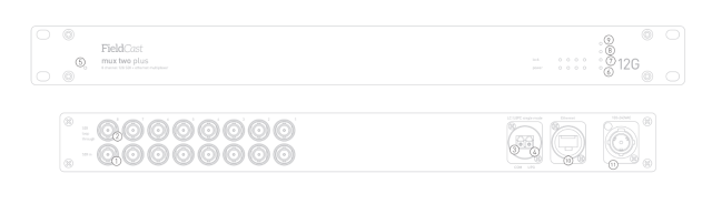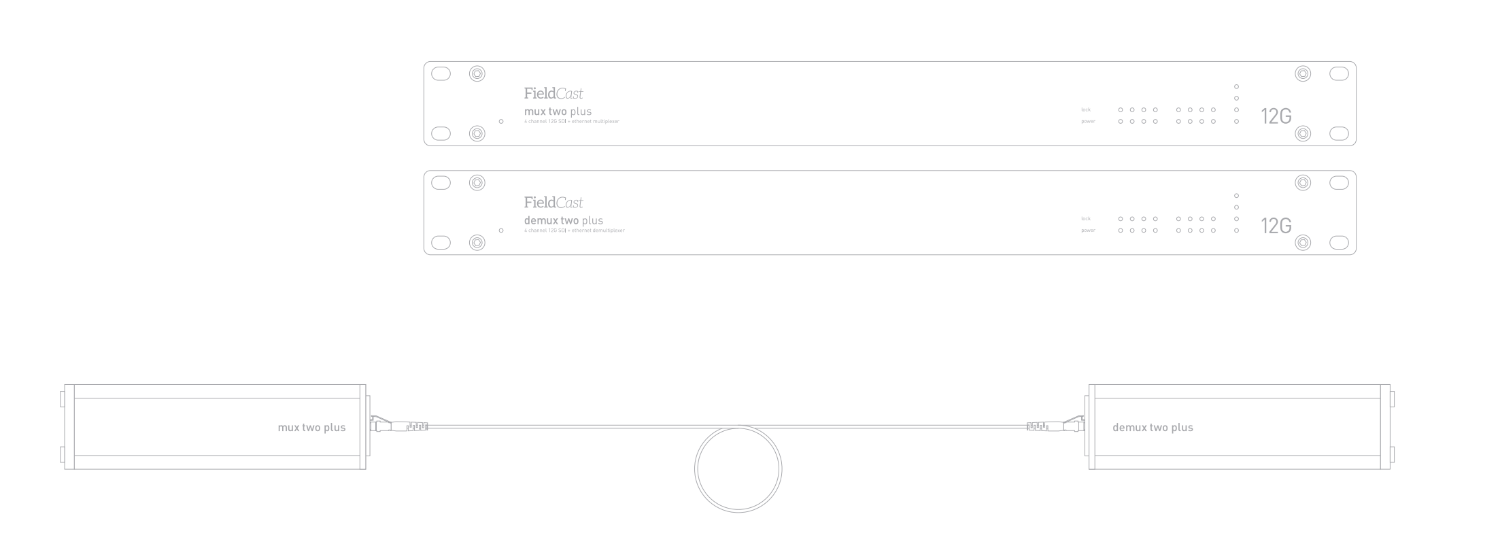 Si tu infraestructura solo admiteuna única fibra simple (simplex), el Mux/Demux Two Plus te permitirá gestionar fácilmente toda la transmisión. O si deseas tender el menor número posible de cables en eventos en directo, este dispositivo te permitirá transmitir todos los datos del punto A al punto B utilizandouna sola fibra. Todas las señales de vídeo 12G conservan la integridad total de los datos: lo que entra, salesin cambios. La conexión Ethernet funciona igual que un cable Cat5 convencional.