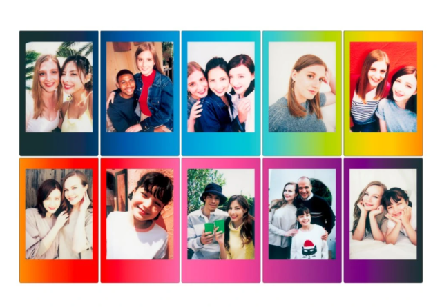 La película instantánea Fujifilm instax mini, con su elegante borde negro, produce