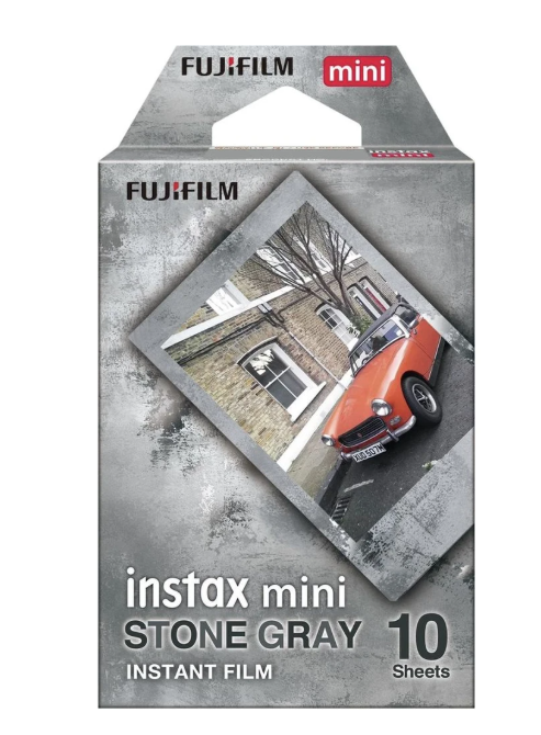 La película Fujifilm Instax Mini Stone Gray es una edición especial que contiene 10 fotografías instantáneas a color con elegantes bordes en gris piedra. Es compatible con todas las cámaras Instax Mini y ofrece imágenes brillantes de alta calidad para tus recuerdos creativos.