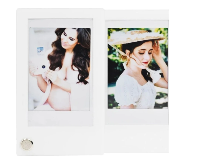 Los tres marcos están firmemente unidos mediante un tornillo metálico, creando así una estructura combinada que se mantiene estable sobre superficies planas. Las fotografías se pueden insertar fácilmente en el marco con solo deslizarlas en su sitio, lo que permite actualizar o reorganizar tus imágenes favoritas de forma rápida y cómoda. Este marco también es un regalo ideal para amigos o familiares a los que les gusta capturar momentos con cámaras Instax.