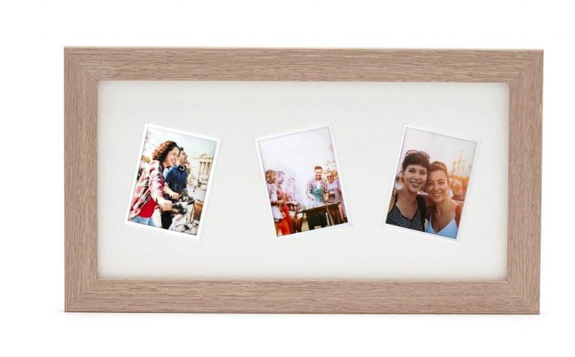 El marco Instax Triple Mini Aperture Frame en acabado de roble es un elegante marco fotográfico diseñado para exhibir tres fotografías Instax Mini. Gracias a su estructura de madera de alta calidad y a su elegante acabado en roble, es ideal para exhibir tus recuerdos favoritos en una estantería o sobre una mesa.