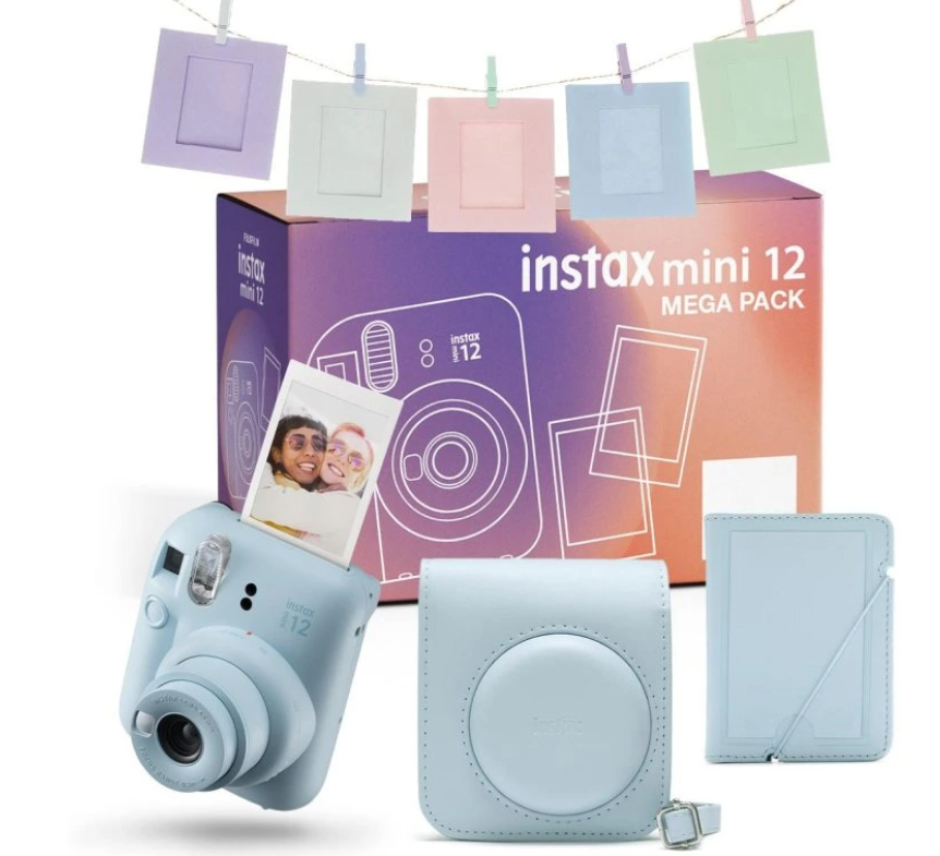 El Fujifilm Instax Mini 12 Mega Pack Pastel Blue + accesorios ofrece todo lo que necesitas para capturar y mostrar tus recuerdos al instante. La Instax Mini 12 actualiza el diseño clásico de la Instax Mini con una forma redondeada y divertida inspirada en las pompas de jabón, en color azul pastel, lo que la hace elegante y divertida de usar.