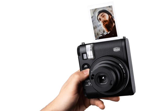 Diseño clásico, impresionante acabado en negro mate, elegantes selectores y botones; todos los materiales y formas de esta cámara analógica instantánea cautivan por su acabado perfecto.
