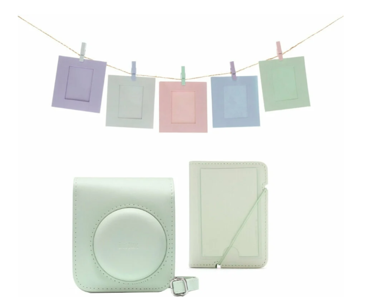Diseño elegante en color verde menta a juego con la cámara Instax Mini 12