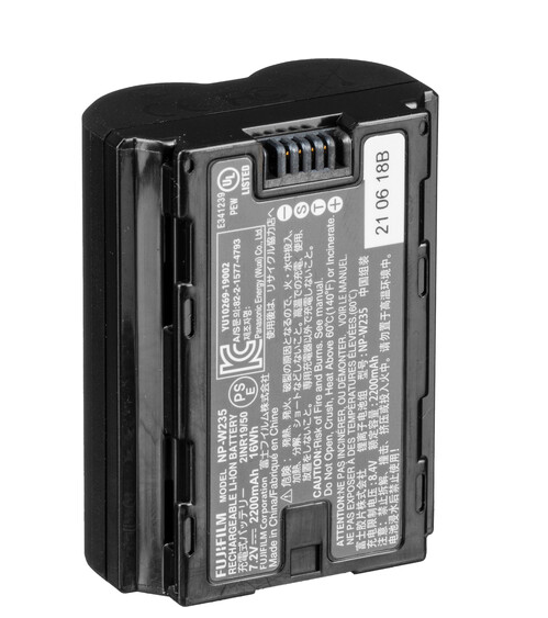 La batería recargable de iones de litio Fujifilm NP-W235 (7,2 V, 2200 mAh) es una batería de repuesto de alta capacidad para determinadas cámaras sin espejo de Fujifilm, incluidos los modelos de las series X-T4, X-T5, X-H2 y GFX. Se puede cargar en la cámara o mediante un cargador doble especial para baterías.