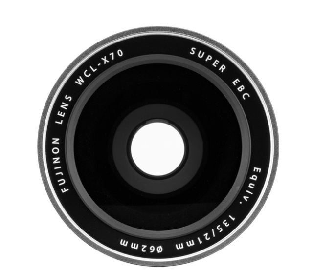 El objetivo gran angular Fujifilm WCL-X70 (plateado) es un objetivo convertidor especial para la cámara digital X70. Amplía el objetivo original a una distancia focal equivalente a 21 mm (aumento de 0,8x) sin reducir la calidad de la imagen ni el rendimiento del enfoque automático.