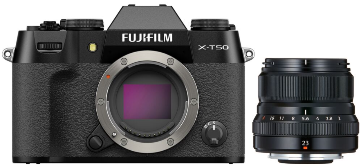 La Fujifilm X-T50 Black es una cámara compacta sin espejo APS-C con un sensor X-Trans CMOS 5 HR de 40,2 MP, un procesador X-Processor 5, vídeo de 6,2K/30p con formato «open-gate», un selector especial de simulación de película con 20 modos (incluido REALA ACE), detección de objetos AF con IA (425 puntos, -7 EV), obturador electrónico de hasta 1/180…