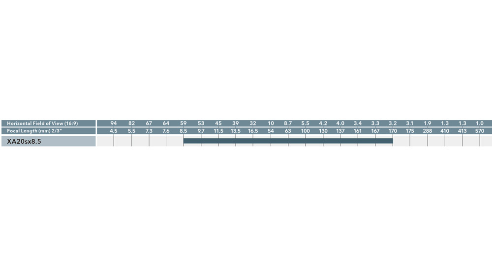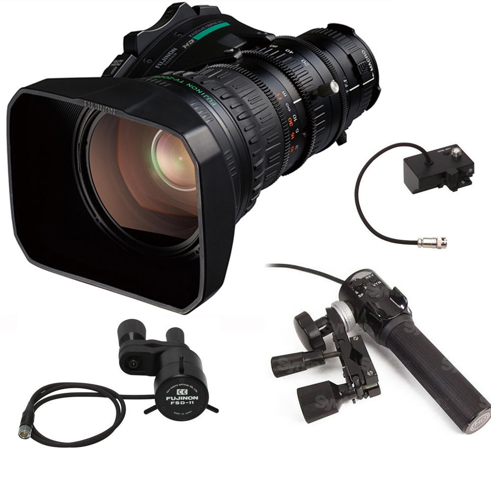 El kit de objetivo profesional Fujinon XA20sx8.5BRM HD (que incluye controlador de zoom/enfoque (FSD-11 ) , (SRD-92B) y (FSM-30B) ) es un teleobjetivo ENG diseñado para cámaras de 2/3". Cuenta con un zoom de 20x, una distancia focal de entre 8,5 y 170 mm y una luminosidad relativa de 1:1,8 en el rango de 8,5 a 113 mm y de 1:2,7 a 170 mm. Gracias a las avanzadas propiedades de su cristal, reduce el efecto de aberración cromática, que se produce porque el objetivo no consigue enfocar todos los colores en el mismo punto de convergencia. El objetivo más económico para la Blackmagic Design URSA Broadcast.