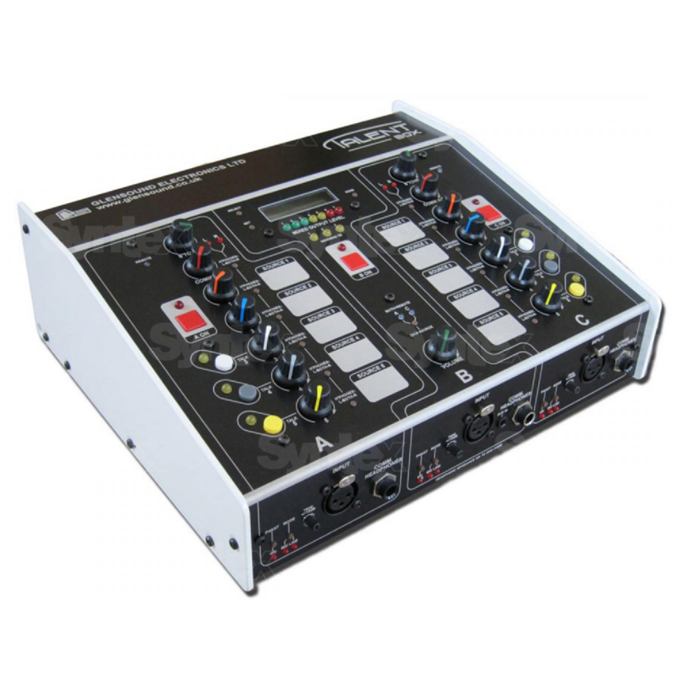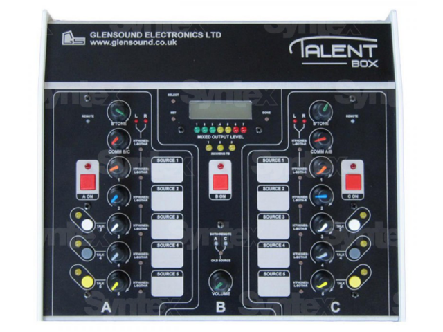 Glensound Talent Box es la nueva generación de sistemas de comentaristas. Permite conectar hasta tres comentaristas y se puede conectar un mando a distancia a cada una de las tres posiciones. Un técnico remoto puede controlar el nivel de volumen de salida a través de una interfaz web. El Talent Box se puede conectar a un sistema de comentaristas más grande.