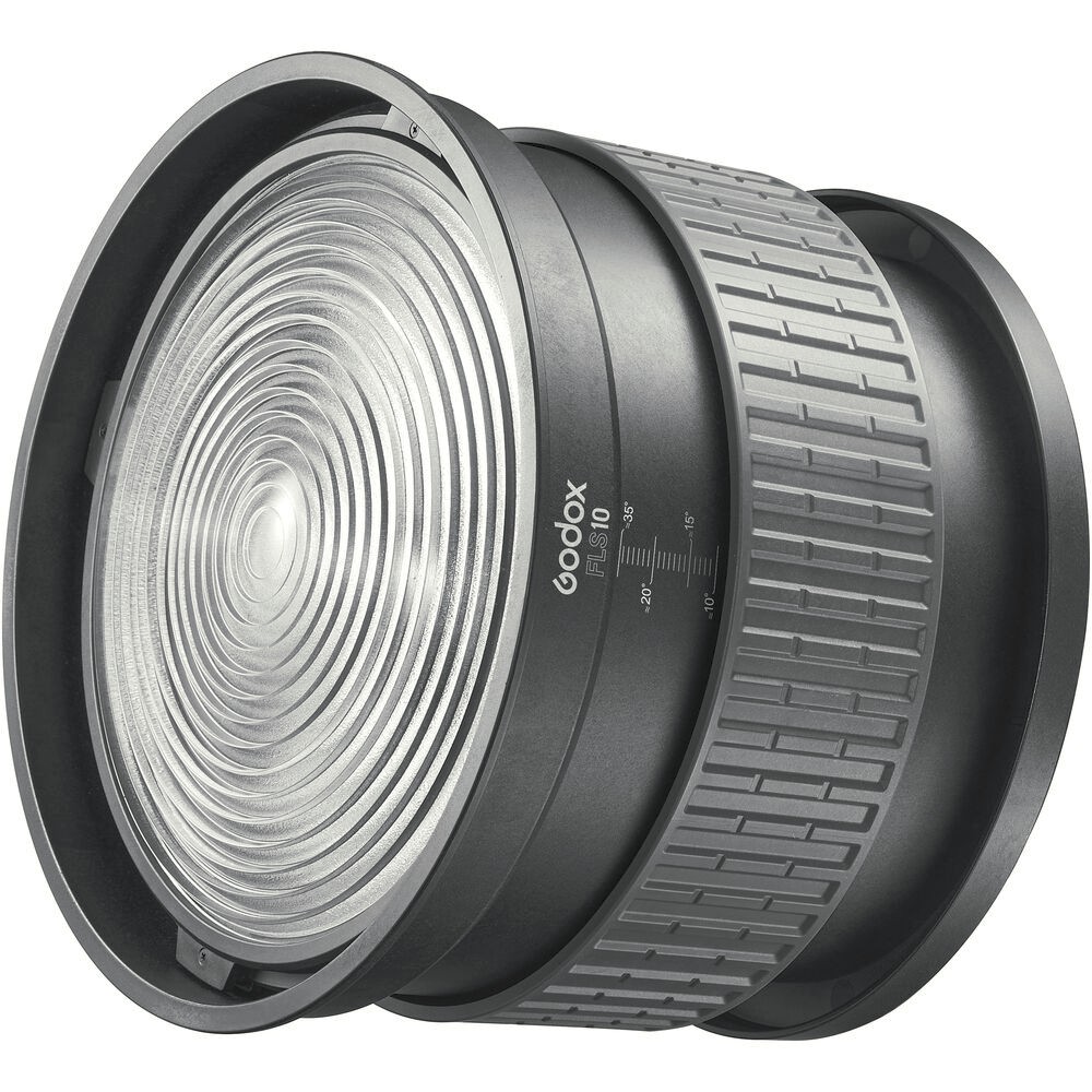La lente Fresnel Godox FLS10 de 10" con montura Bowens está diseñada para la luz LED Knowled M600D Daylight y ofrece un control ajustable del haz y un mayor rendimiento. Gracias a su ángulo de haz ajustable de forma continua entre 10° y 35° y a su óptica Fresnel de alta calidad, proporciona una luz suave y uniforme, ideal para cine, fotografía y aplicaciones profesionales en estudio.
