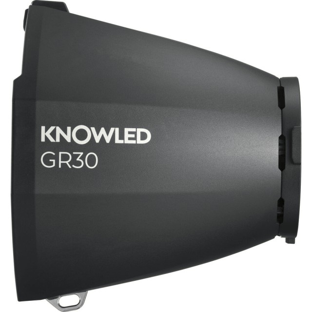 El reflector Godox Knowled 30° está diseñado para los flashes MG1200BI, MG2400BI, MG1200R y MG2400R. Modela la dispersión del haz y, al mismo tiempo, reduce la luz difusa. Su sencillo montaje mediante un giro rápido garantiza una fijación segura y proporciona un suave haz de luz puntual de 30°, ideal para objetos o escenas de mayor tamaño.