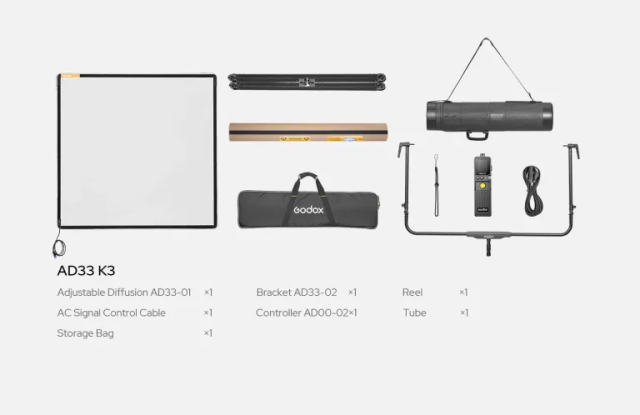 El kit de difusores ajustables Godox Knowled AD33 K3 es un sistema de difusión motorizado profesional diseñado para los procesos de trabajo modernos en cine, vídeo y fotografía. Gracias a su marco plegable de gran formato, al control motorizado preciso de la difusión, a la compatibilidad con múltiples fuentes de alimentación y a la avanzada…