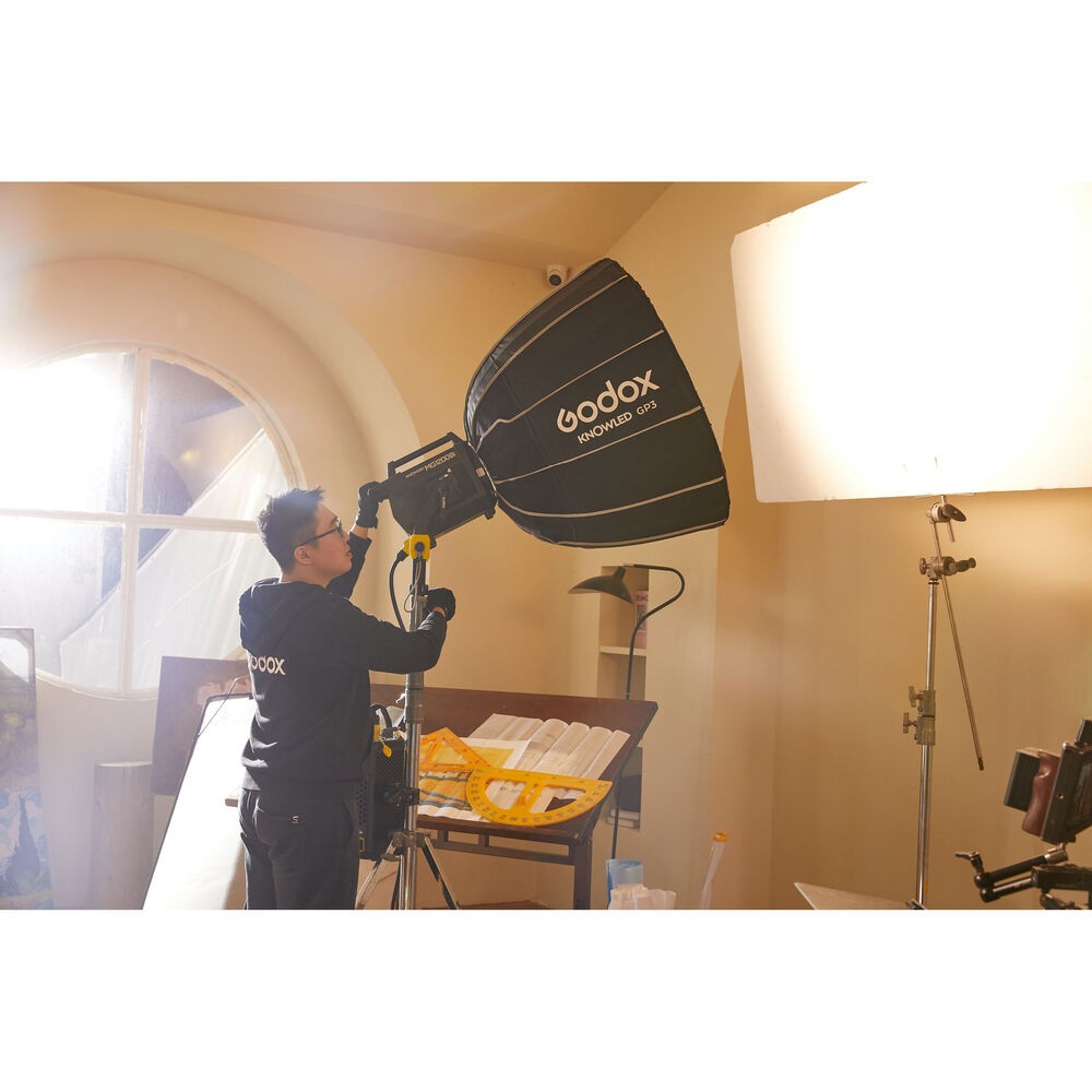 Las opciones de control son amplias: los usuarios pueden ajustar el brillo y la temperatura de color mediante controles integrados, DMX/RDM, LumenRadio CRMX, Bluetooth (aplicación Godox Light) o sistemas inalámbricos de 2,4 GHz, lo que permite una integración fluida en cualquier flujo de trabajo. El MG1200Bi también es compatible con los protocolos Art-Net y sACN a través de Ethernet, lo que ofrece opciones profesionales de control en red.