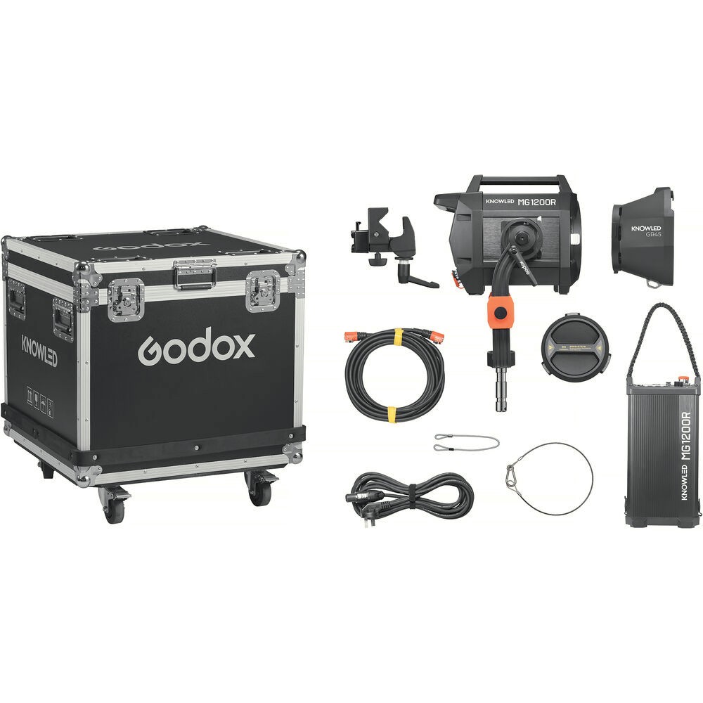 Mejora tu iluminación con el kit Godox Knowled MG1200R RGB LED Monolight, un potente dispositivo RGB de 1500 W con gama completa de colores diseñado para cineastas y fotógrafos profesionales. Esta luz versátil proporciona 21 300 lux a 9,8' (con el reflector de 45° incluido) y ofrece un amplio rango de temperatura de color de 1800 a 10 000 K para una iluminación precisa y dinámica. Gracias a sus valores de CRI 96 y TLCI 95, garantiza una fidelidad cromática excepcional, mientras que los controles integrados DMX, CRMX y la aplicación permiten una gestión flexible a una distancia de hasta 40 m.