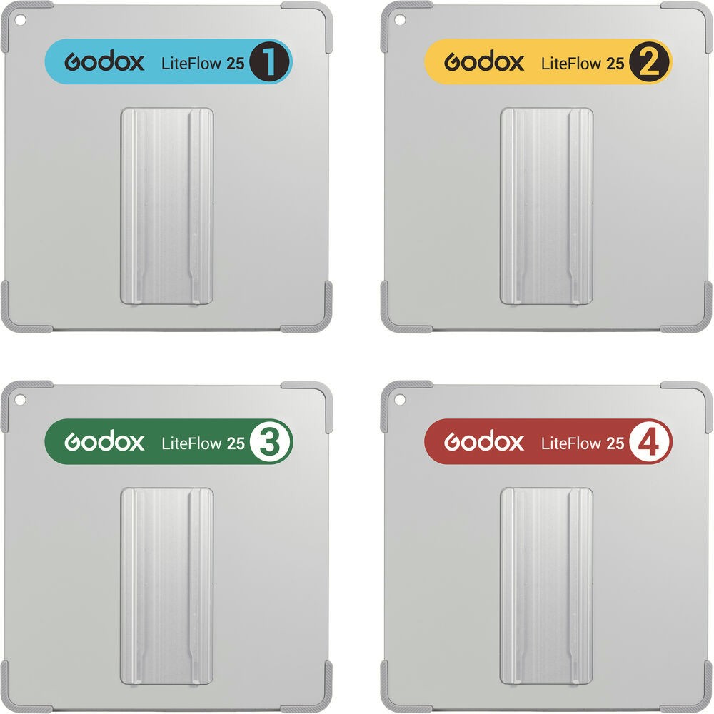 El kit de reflectores Godox Knowled LiteFlow 25 forma parte del avanzado sistema de reflectores Cine Lighting Reflector System de Godox, diseñado para ofrecer a los cámaras, iluminadores y cineastas un control excepcional sobre la iluminación indirecta, tanto en estudio como en exteriores. Este kit versátil incluye cuatro reflectores LiteFlow 25 de 10 × 10 pulgadas, cada uno con una característica de difusión diferente —luz dura, media, suave y banda de luz suave—, lo que te permite moldear y redirigir la luz con precisión cinematográfica incluso en espacios reducidos.
