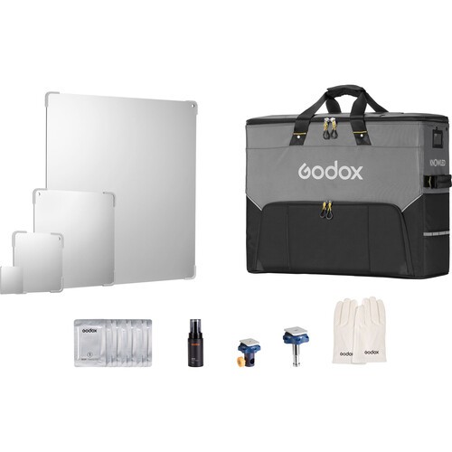 El kit de reflectores Godox Knowled LiteFlow K1 es un completo sistema profesional de reflectores diseñado para aumentar la precisión de la iluminación y la creatividad en la grabación de películas, programas de televisión y sesiones fotográficas. El kit incluye 16 reflectores de aluminio en cuatro tamaños —3 x 3", 6 x 6", 10 x 10" y 20 x 20"— cada uno de los cuales ofrece diferentes características de difusión de la luz, desde una difusión dura y media hasta una difusión suave y en banda.