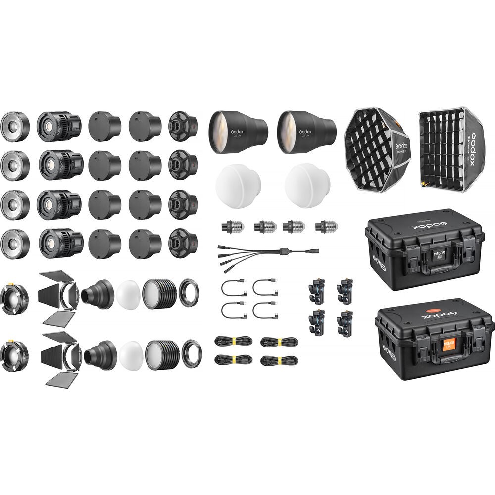 El Godox Knowled MS60BI 4K es un kituniversal de cuatro luces LED bicolores que proporciona hasta 17 400 lux por luz a una distancia de 1 metro, con una temperatura de color ajustable de 2800 a 6500 K. Este kit compacto, modular y refrigerado por ventilador está equipado con Bluetooth, DMX/RDM, CRMX y control mediante aplicación; además, ofrece 11 efectos de luz, varias opciones de alimentación y una amplia gama de modificadores incluidos para aplicaciones cinematográficas, televisivas y de estudio.